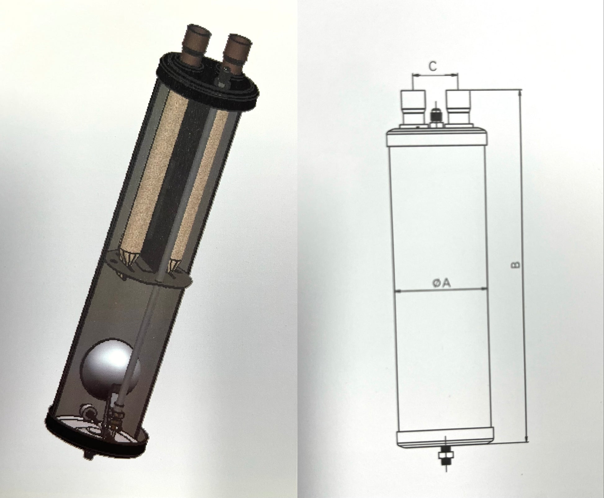 Fine separation occurs here. The separated oil drips onto a float at the bottom of the oil-water separator. The operating valve will then reset and adjust back to the crankcase or waste tank.